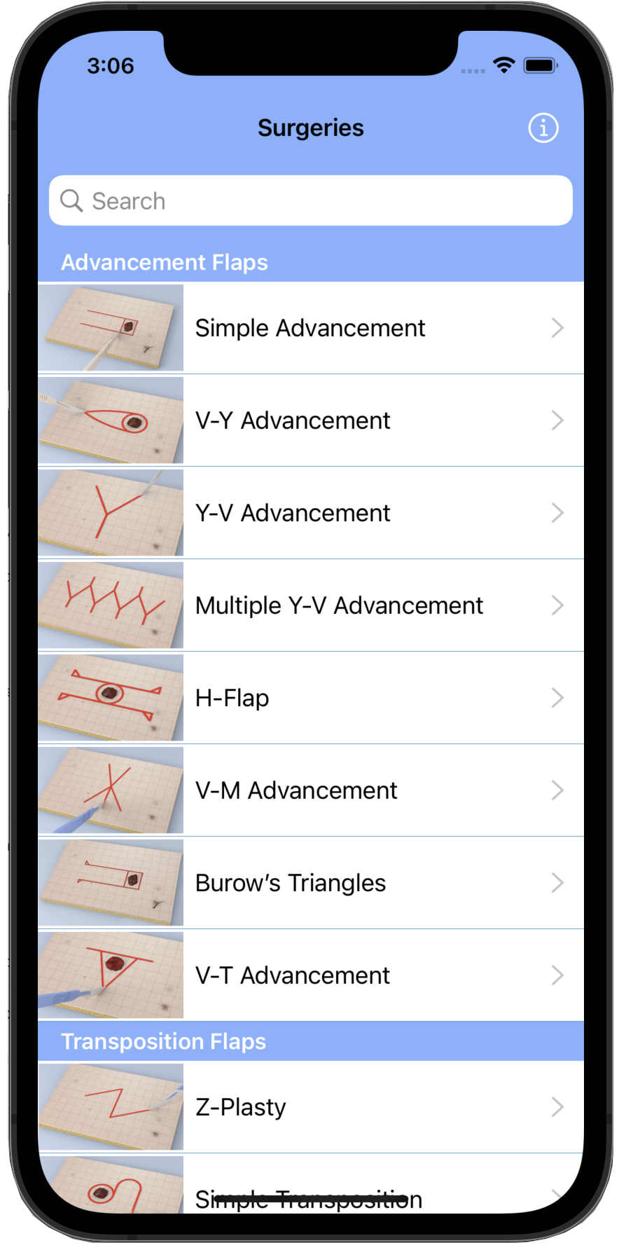 Surgical Flaps app available for iPhone and iPad Select from numerous commonly used flap surgeries including Advancement, Transposition and Rotation flaps. Watch 3D animations that help to visualise the transposition of the tissues Each flap surgery is described with a diagram along with key facts and pitfalls